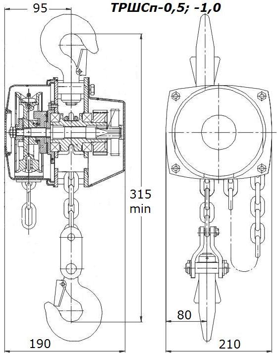Таль ручная стационарная шестеренная с поворотным кожухом тяговой цепи ТРШСп предназначена для подъёма, удержания в поднятом положении и опускания груза, а также для его перемещения по горизонтальной или наклонной плоскости, в режиме 1М по ГОСТ 25835.