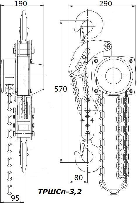 Таль ручная шестеренная цепная ТРШСп-3.2/9