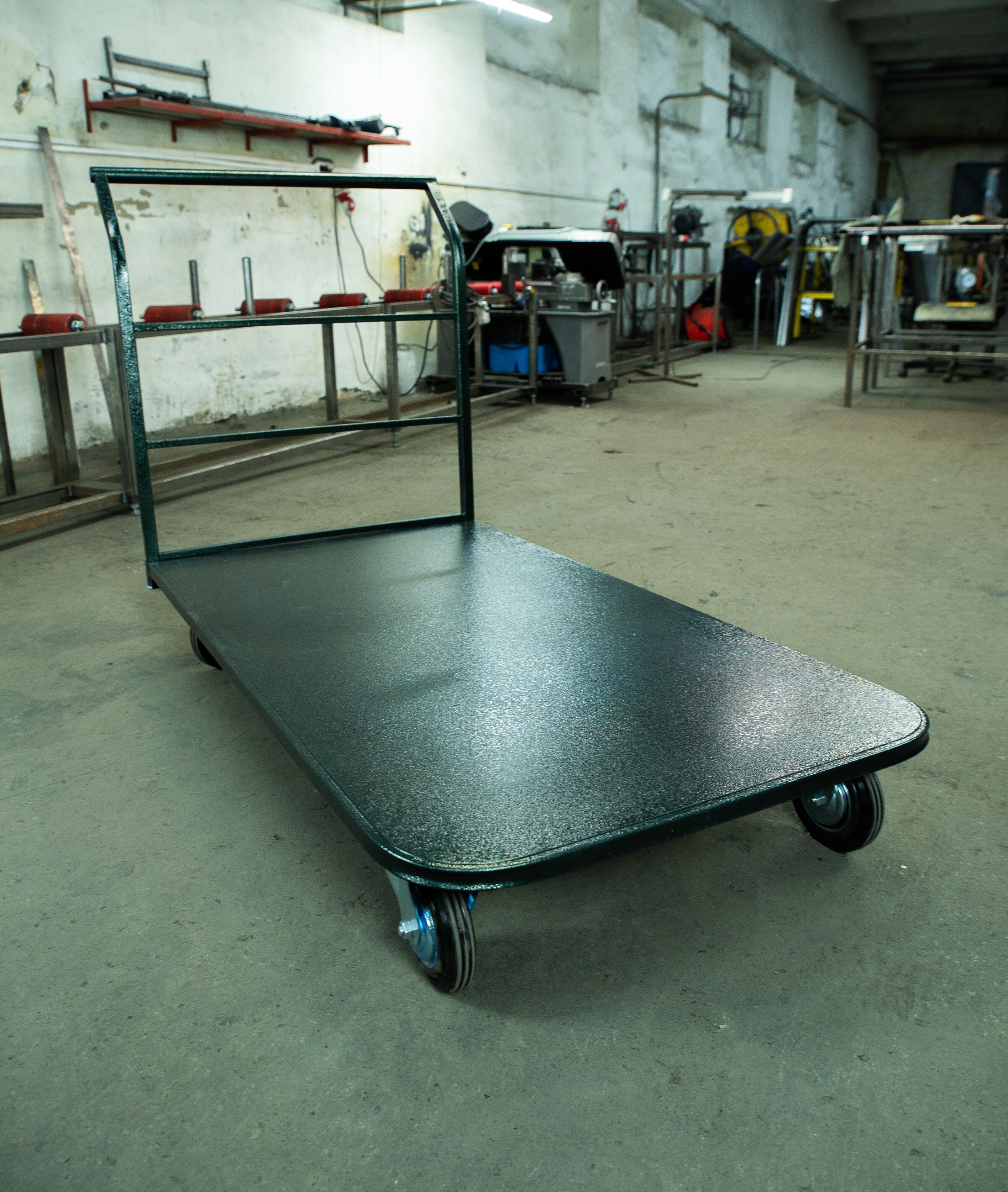 каркаса, металлической ручки, платформы, и колес. Благодаря использованию разных по диаметру колес обеспечивается грузоподъемность тележек от 300 кг до 555 кг. Размер платформы данной тележки 700 на 1200 мм, грузоподъемность составляет 435 кг, диаметр колес 160 мм. В силу своего большего размера эта тележка будет самой дорогой в серии ТП, но сможет более эффективно управляться с большими объемами груза.Тележка платформенная ТП-4 обладает самой большой платформой в этой серии платформенных тележек. Если вам необходима большая полезная площадь платформы, выбирать стоит именно эту тележку. Эти платформенные тележки отличаются простотой и надежностью, которая необходима для перевозки и комплектовании грузов. Все тележки серии ТП состоят из металлического каркаса, металлической ручки, платформы, и колес. Благодаря использованию разных по диаметру колес обеспечивается грузоподъемность тележек от 300 кг до 555 кг. Размер платформы данной тележки 700 на 1200 мм, грузоподъемность составляет 435 кг, диаметр колес 160 мм. В силу своего большего размера эта тележка будет самой дорогой в серии ТП, но сможет более эффективно управляться с большими объемами груза.