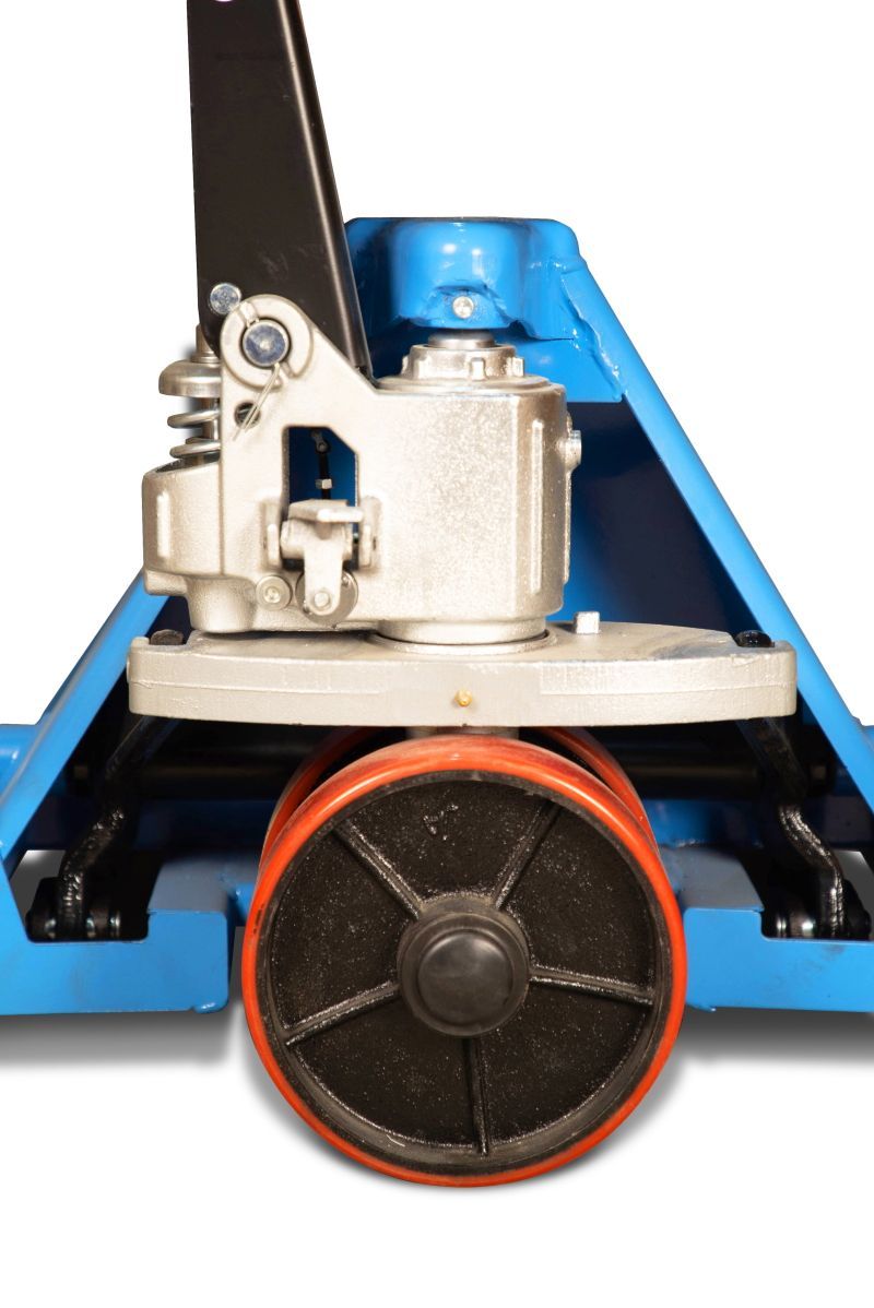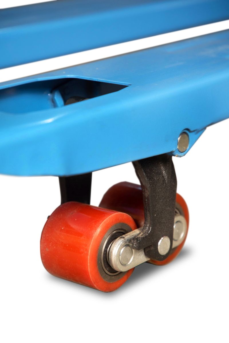 колёсами, однако при необходимости их легко заменить. Это даёт возможность подобрать оптимальное решение для вашего напольного покрытия. Дорожный просвет в 32 мм позволяет не обращать внимания на небольшие неровности пола при перемещении грузов.