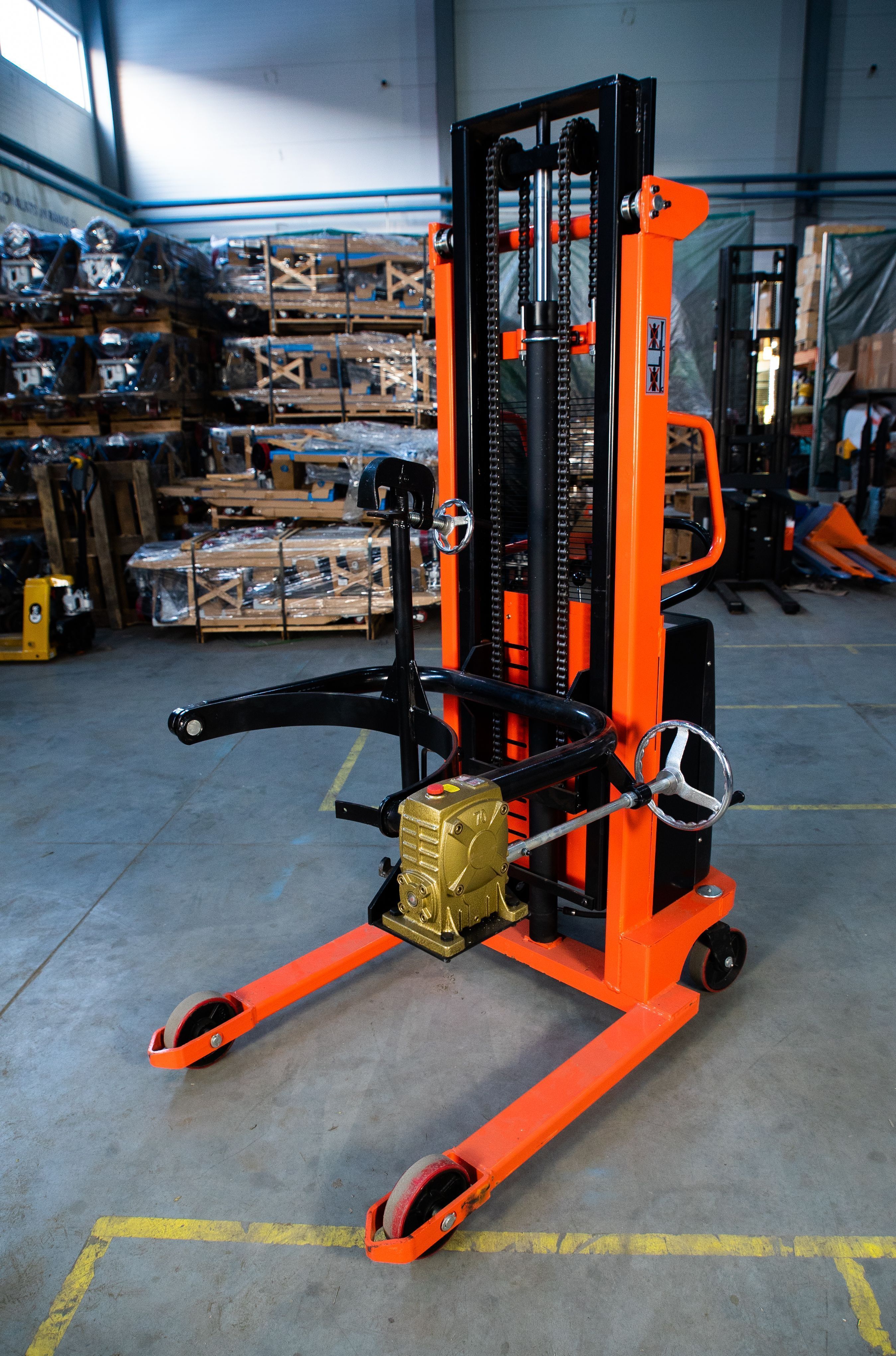Такие штабелёры активно используется на складах и производствах для подъема, перемещения, штабелирования, переворота и опорожнения бочек. Ведь последние являются довольно нестандартным грузом, требующим особых условий перемещения. Различные сыпучие, жидкие и пастообразные вещества требуют специального оборудования.