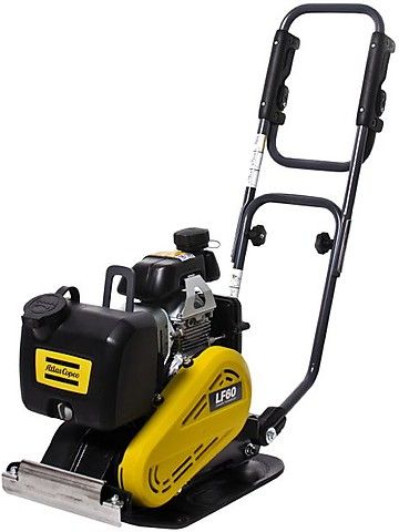 Виброплита Atlas Copco LF60 с двигателем Honda GX100, работающим на бензине, мощностью 3 л.с., с системой орошения и габаритами рабочей плиты 320х505 мм для уплотнения различных поверхностей под строительство или прокладку тратуара, плитки и других дорожных покрытий. Виброплита имеет только поступательное направление движения со скоростью 25 метров в минуту, но из-за компактных размеров идеально подходит для работы в стесненных условиях, вблизи колонн, столбов, стен, в узких рвах и так далее. Складная рукоятка позволяет транспортировать в небольших автомобилях и хранить в небольших помещениях. Также на рукоятке установлена система гашения вибраций. Прочная рама с изгибом под крюк подъемного крана. Система орошения состоит из бака для воды объемом 5 литров, расположенным над рабочей плитой, вода поступает в зону орошения самотеком.