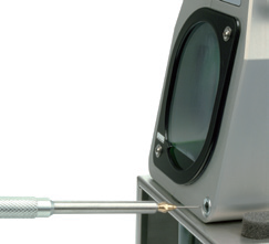 Заточной станок ULTIMA-TIG прост в использовании. Электрод помещается в держатель, стрелка регулятора угла заточки устанавливается в нужное положение, электрод вставляется в комбинированное устройство вылета и зажима. При необходимости, по окончании заточки, можно сделать притупление электрода, установив угол наклона в позицию 90°.