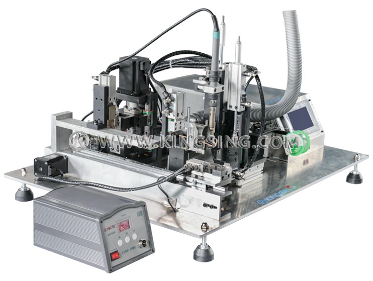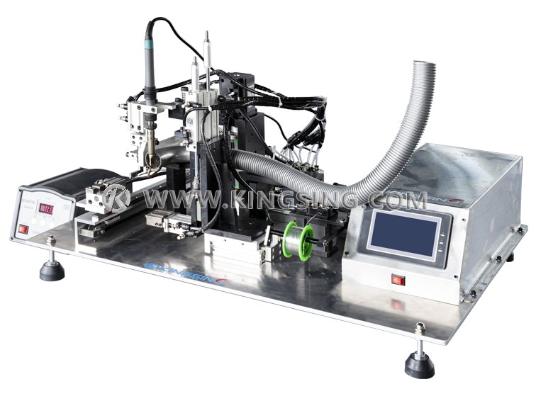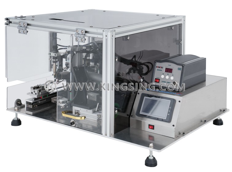 KS-W23M — это машина для пайки разъемов и проводов, установка зажима проводов, вытягивание, зачистка и пайка в одном устройстве, оператору нужно только закрепить провод и разъем на специальном приспособлении, нажать на педальный переключатель для автоматического запуска, зачистки и пайки. параметры можно регулировать на экране, операция проста и удобна.