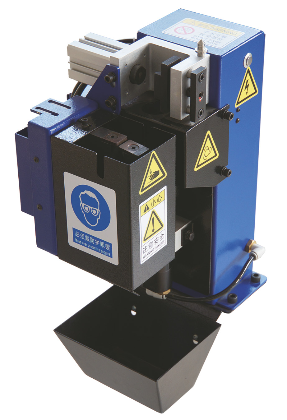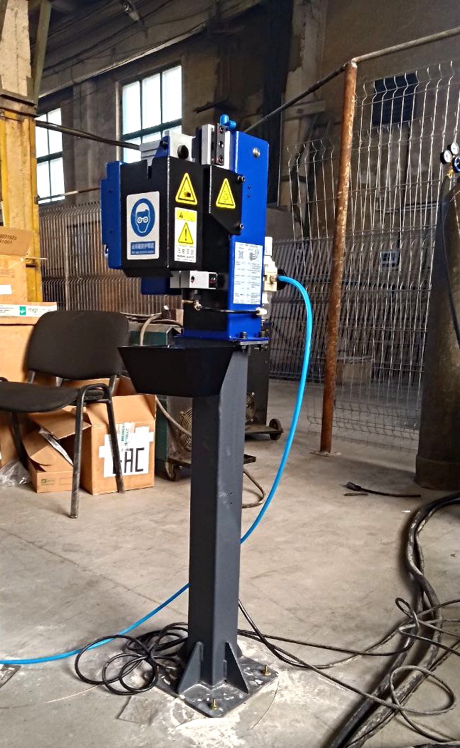 - Поставляется в комплекте с блоком подготовки воздуха и контейнером для сбора обрезков проволоки и срезанного нагара.