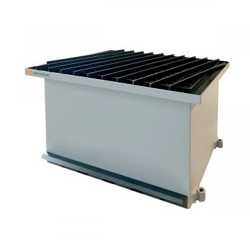 Стальная конструкция стола цельносварная. Имеет защитное лакокрасочное покрытие в несколько слоёв. Рабочая поверхность в виде прочной стальной решётки, пластины которой установлены вертикально с небольшим уклоном. Для присоединения к фильтровентиляционному агрегату или общей системе вентиляции в конструкции предусмотрен соединительный фланец.