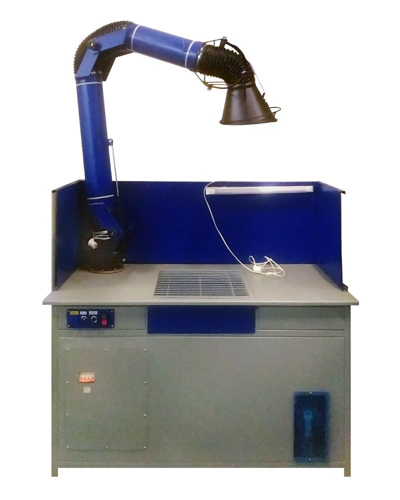 Стол сварщика (сварочный пост) СС-02-06 состоит из каркаса сварной конструкции, выполненного из стальной профильной трубы, с обшивками из листовой стали, подъемно-поворотного вытяжного устройства, системы воздуховодов, фильтрующей кассеты с системой самоочистки, встроенного вентилятора.