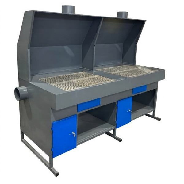 Стол сварщика (сварочный пост) неповоротный ССН-04-02 предназначен для организации рабочего места сварщика для проведения сварочных, зачистных и шлифовальных работ с изделиями малых и средних размеров с одновременным удалением сварочных аэрозолей, газовых смесей и абразивной пыли (при шлифовальных и зачистных работах). Габаритные размеры и конструкция стола сварщика позволяют использовать его для организации 2-х рабочих мест.