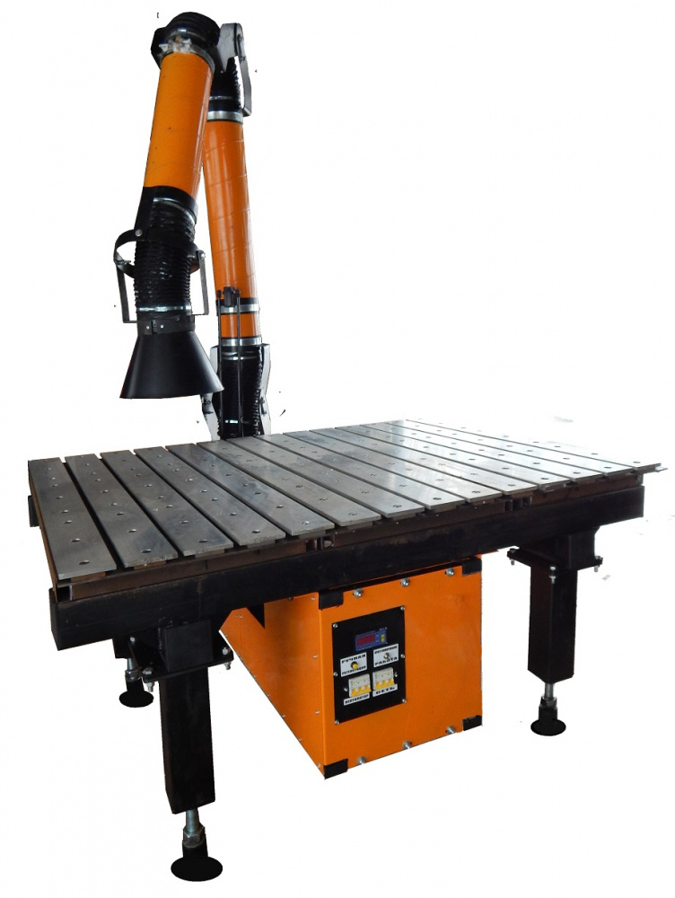 Отбор воздуха, загрязненного сварочным дымом и аэрозолями производится с помощью поворотно-вытяжного устройства,расположенного на рабочей поверхности стола. Использование поворотно-вытяжного устройства позволяет расширить функциональные возможности данного оборудования, обеспечивая локальную вытяжку как с рабочей поверхности стола, так и за его пределами.