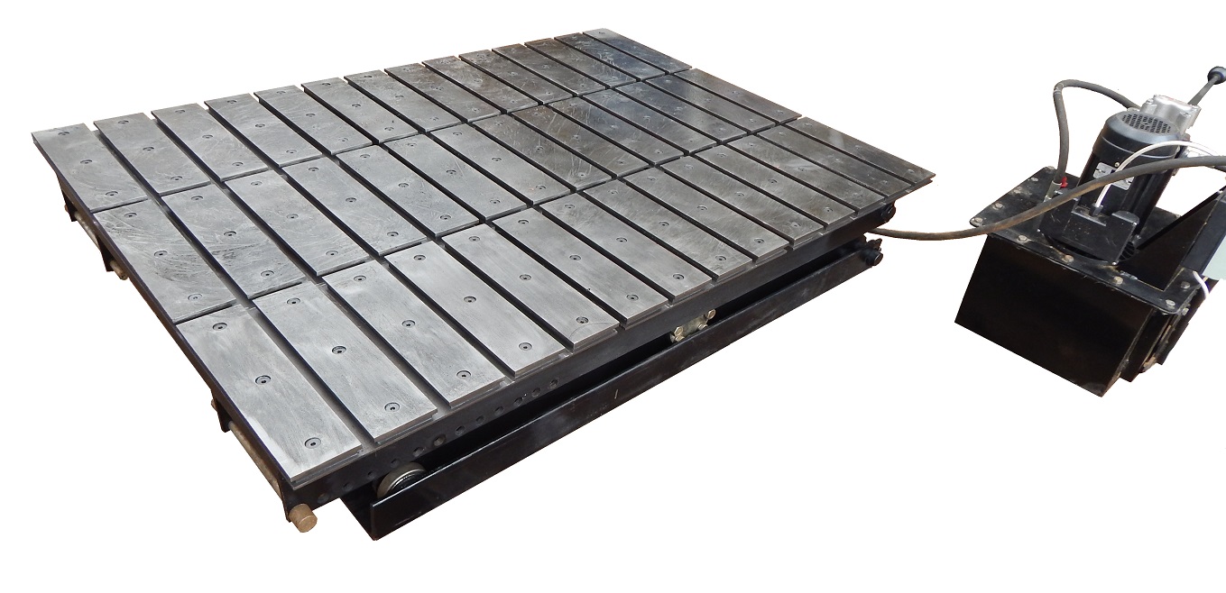 Для удобства установки и монтажа конструкции, рабочая поверхность стола может менять свою высоту посредством гидропривода.
