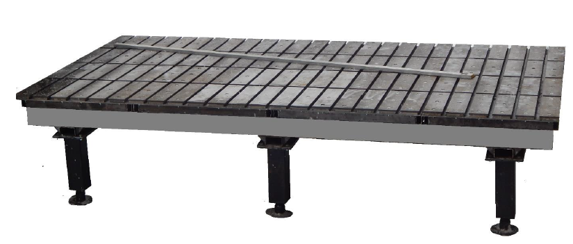 Сварочно-сборочный стол 3D ССД-12-03 исп.2 состоит из сборно-разборного основания на 6-ти стойках и столешницы, образованной двумя цельнолитыми чугунными плитами толщиной 25 мм.