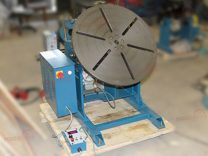 Сварочный позиционер, поднимая, вращая и наклоняя заготовку, создаёт ей оптимальное положение для сварки и сборки. Планшайба, которой оборудован сварочный позиционер, имеет возможность разворачиваться от 0 до 90°, и, таким образом, может устанавливать любой сварочный угол. Класс устройств средней грузоподъемности - 600 кг.