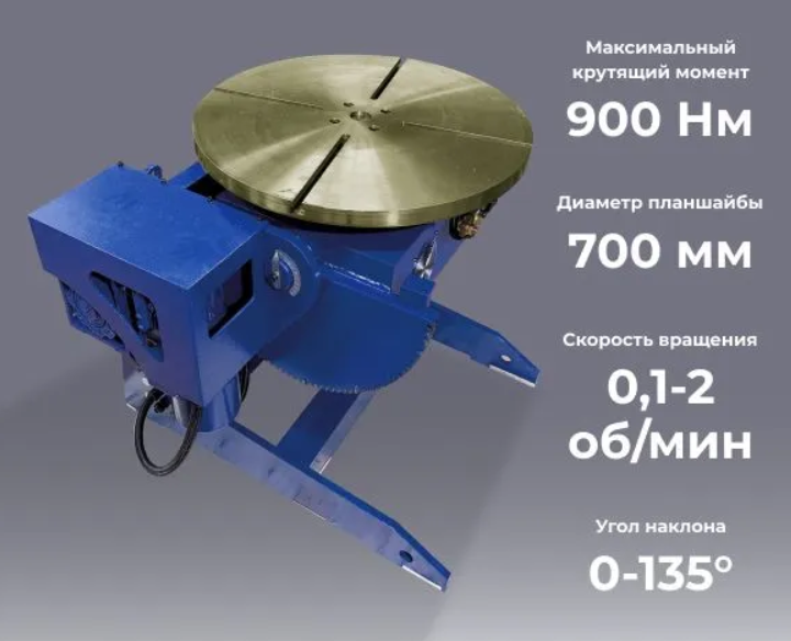 Двухосевой вращатель обеспечивает плавное и точное позиционирование детали в двух плоскостях с регулировкой скорости. Надёжный 3-кулачковый зажим фиксирует заготовки любой формы и массы до 1000 кг, ускоряет работу и повышает качество шва.