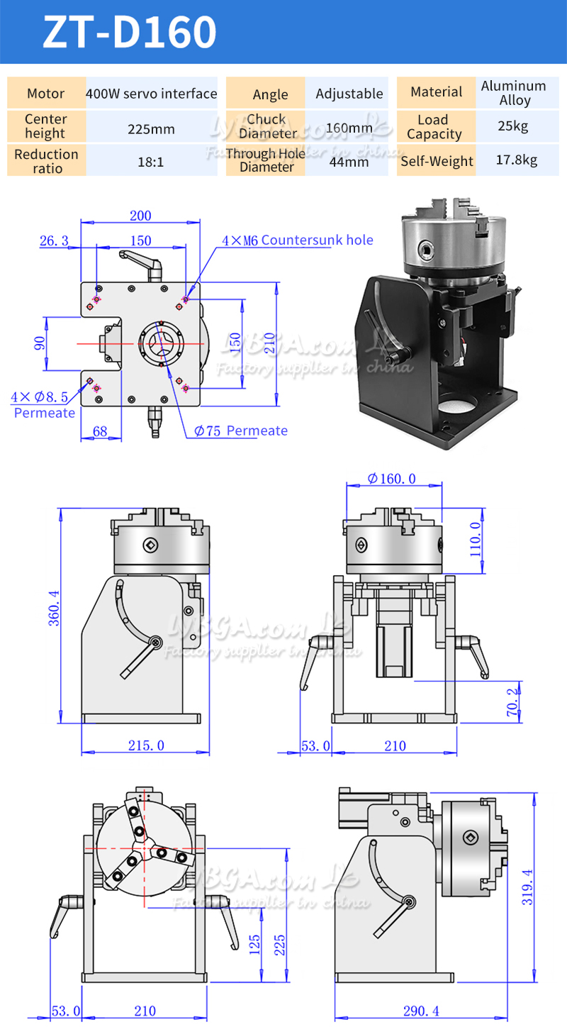 Сварочный позиционер ZT-D160 с серводвигателем и блоком контроллера предназначен для использования с лазерным сварочным аппаратом.