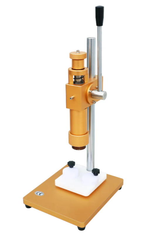 Это настольный укупорочный инструмент для духов. Он выпускается в двух цветах — золотом и серебряном. Изготовлен из высококачественной легированной стали, прочной и долговечной. Он многофункционален, то есть может не только обжимать колпачки распылителей, но и запечатывать кольца флаконов с духами.