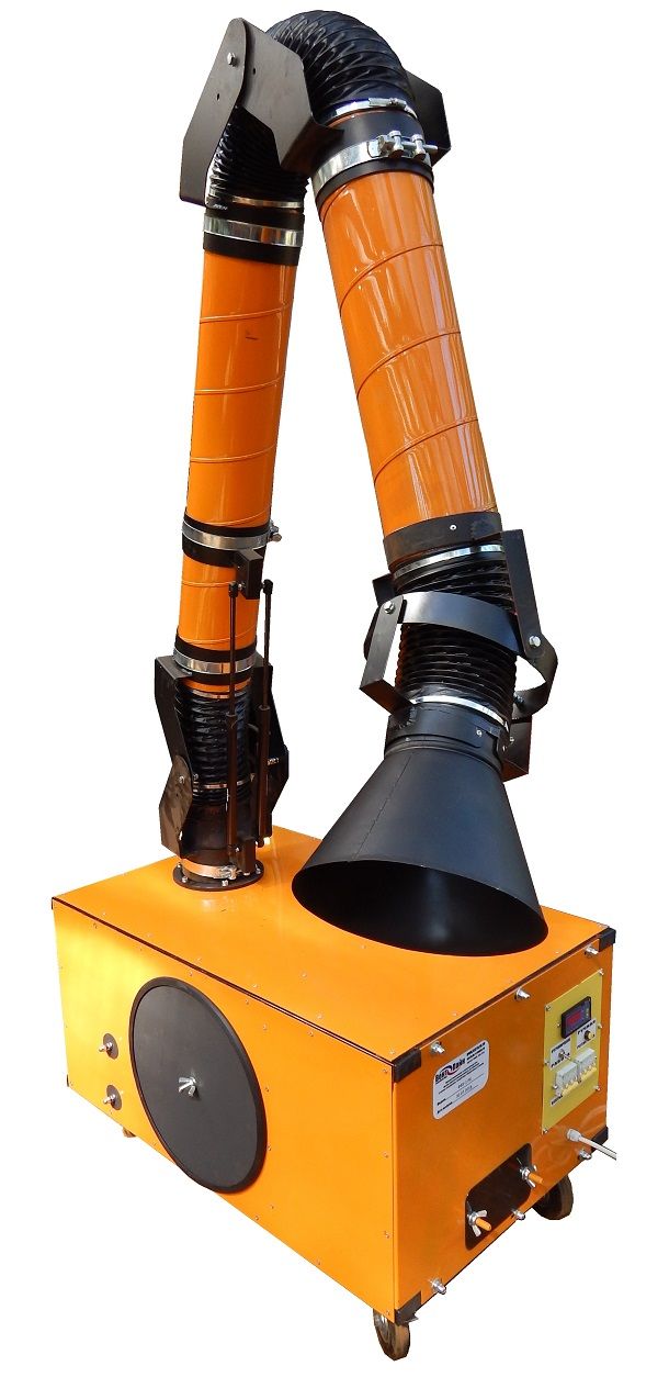 Фильтровентиляционная установка ФВУ-1 РК состоит из корпуса, к верхней части которого крепится поворотно-вытяжное устройство, через которое осуществляется забор загрязненного воздуха из зоны сварки. Радиус действия ПВУ обычно составляет 2,0 м., но по желанию Заказчика этот параметр может меняться в ту или иную сторону. ПВУ снабжена собственным искрогасителем.