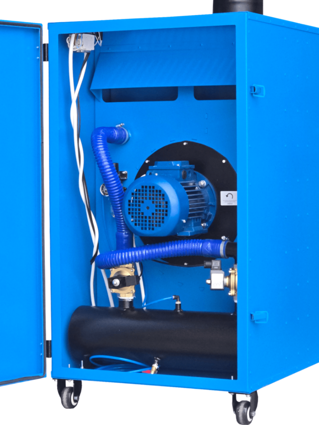 Благодаря наличию в конструкции колесных опор установка ФВУ-03 легко перемещается и устанавливается в местах проведения зачистных и сварочных работ.