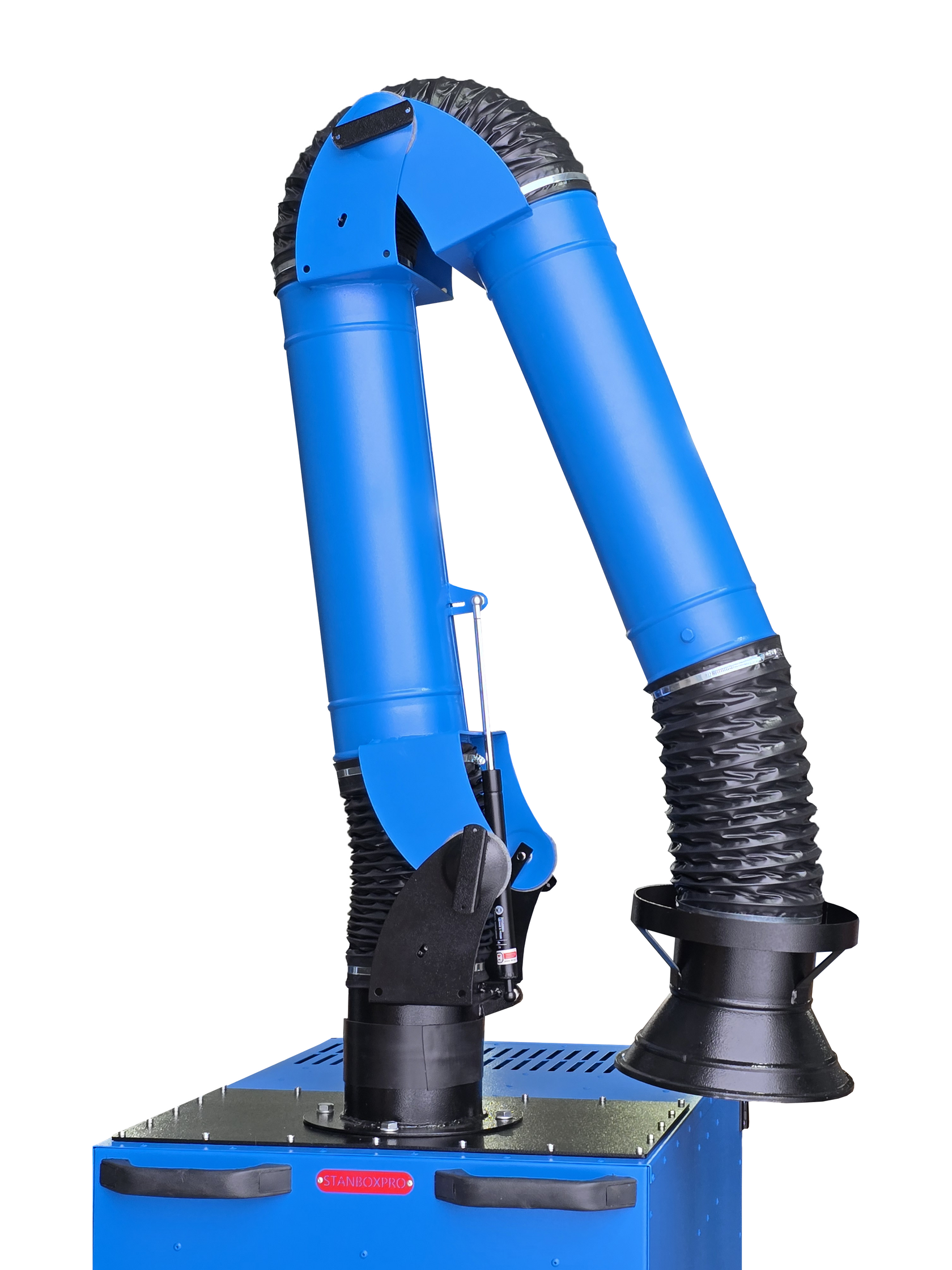Для удаления вредных веществ из зоны выполнения работ фильтровентиляционная установка ФВУ-03 оборудована подъемно-поворотным вытяжным устройством (ПВУ), которое позволяет выполнять безопасные работы в радиусе 2 м от установки.