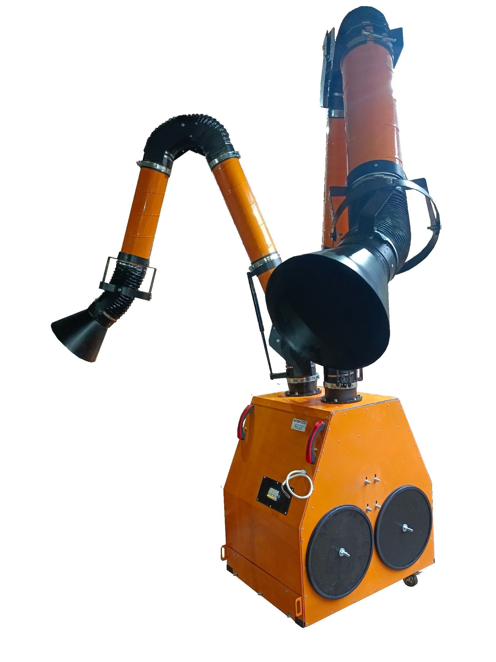 Фильтровентиляционная установка (ФВУ-2 СФ) состоит из корпуса, к верхней части которого крепится два поворотно-вытяжных устройства, через которые осуществляется забор загрязненного воздуха из зон сварки. Радиус действия ПВУ обычно составляет 2,0 м., но по желанию Заказчика этот параметр может меняться в ту или иную сторону. ПВУ снабжена собственным искрогасителем.