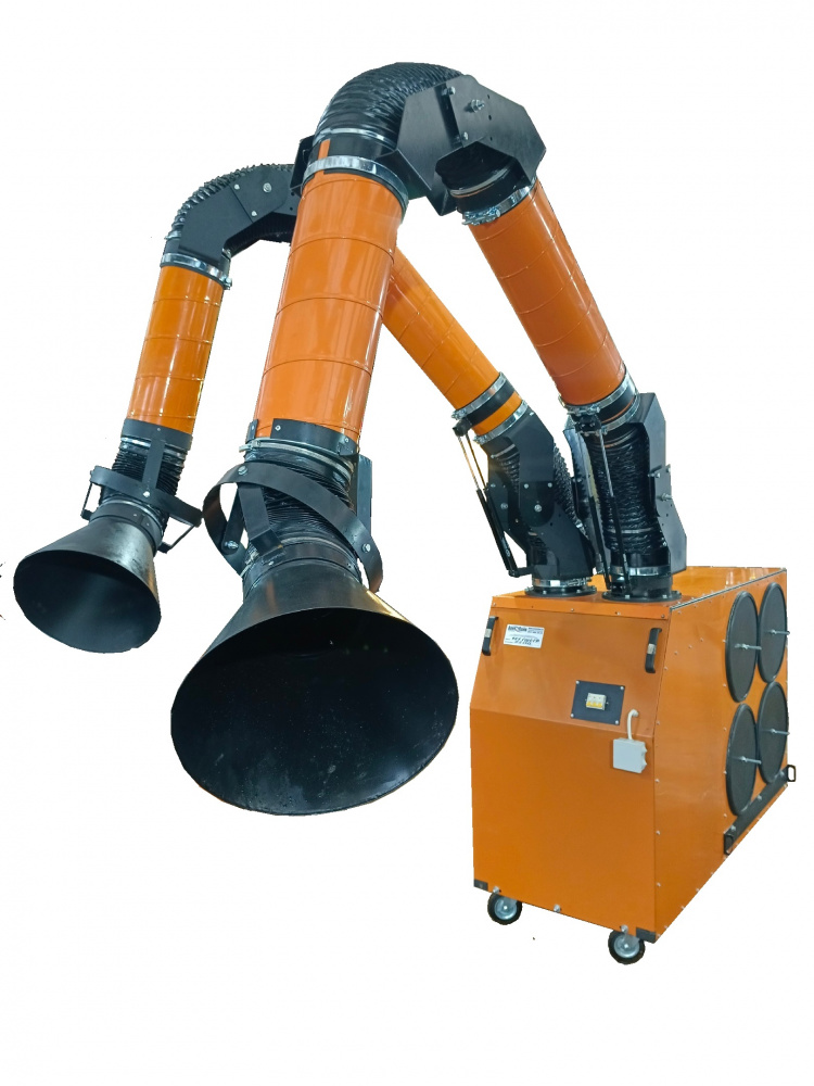 Установка оборудована металлическим фильтром грубой очистки, одновременно выполняющем роль искрогасителя и четырьмя регенерируемыми картриджными фильтрами, осуществляющими задержание частиц дыма и аэрозоля, образующихся в результате термической резки металла.