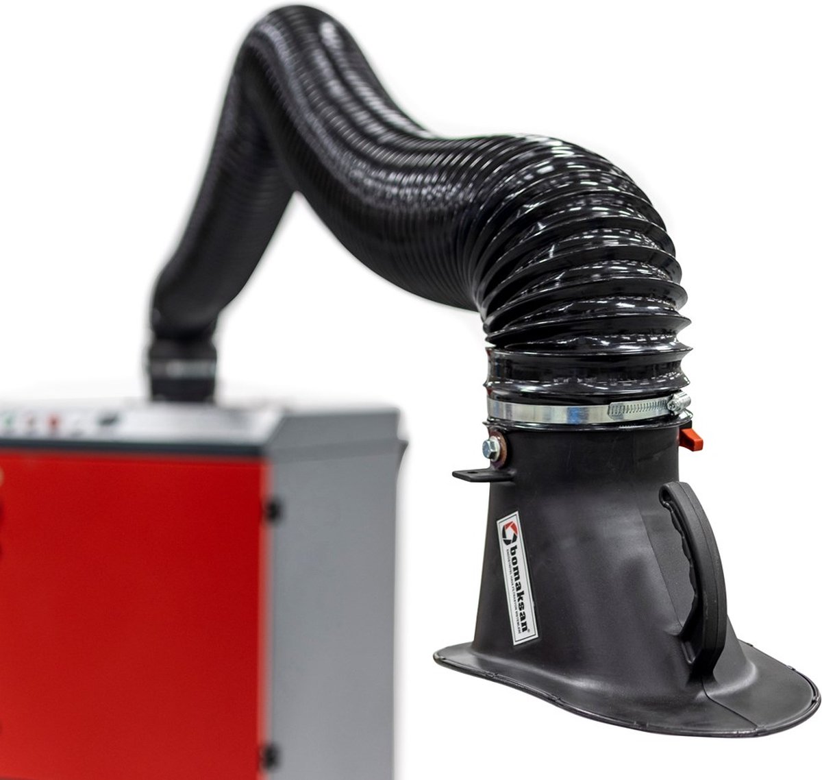 - Вытяжной рукав, изготовленный из черного поливинилхлорида премиум-класса повышенной прочности, обеспечивает максимальную производительность для удаления дыма и пыли от места работ