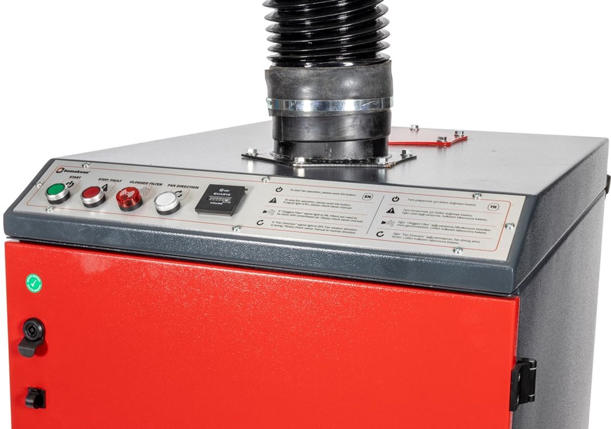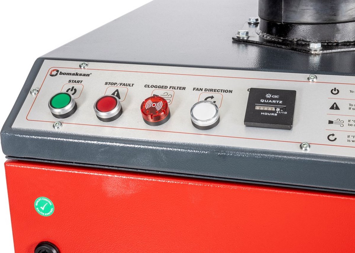 - Панель управления оснащена индикатором эффективности работы фильтра, переключателем Вкл/Выкл, счётчиком моточасов, индикатором корректного вращения вентилятора;