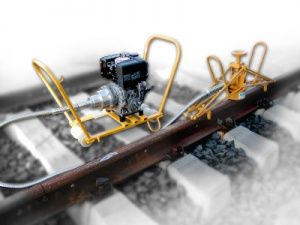 Рельсошлифовальный станок с отдельной силовой установкой и легким шлифовальным кругом для быcтрого снятия и установки на головку рельса.